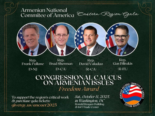 WASHINGTON, DC – The Armenian National Committee of America Eastern Region (ANCA-ER) is proud to announce that the Congressional Armenian Caucus will be honored with the ANCA Eastern Region Freedom Award at its 19th Annual Gala, to be held on Saturday, October 11, 2025, at the Ronald Reagan Building & International Trade Center in Washington, DC.