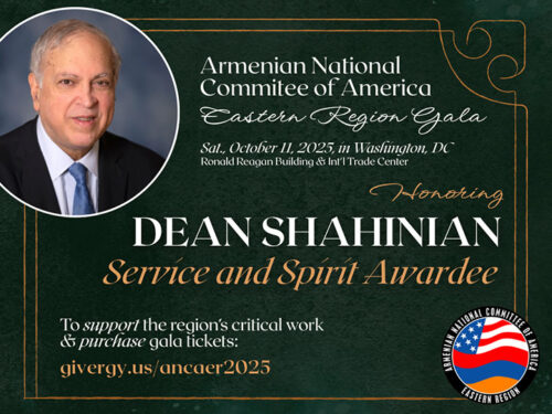 WASHINGTON, DC – The Armenian National Committee of America Eastern Region (ANCA-ER) is proud to announce that Dean Shahinian, Esq. will receive the inaugural ANCA Eastern Region “Service and Spirit Award” at the 19th Annual ANCA-ER Gala, to be held on Saturday, October 11, 2025, at the Ronald Reagan Building & International Trade Center in Washington, DC.