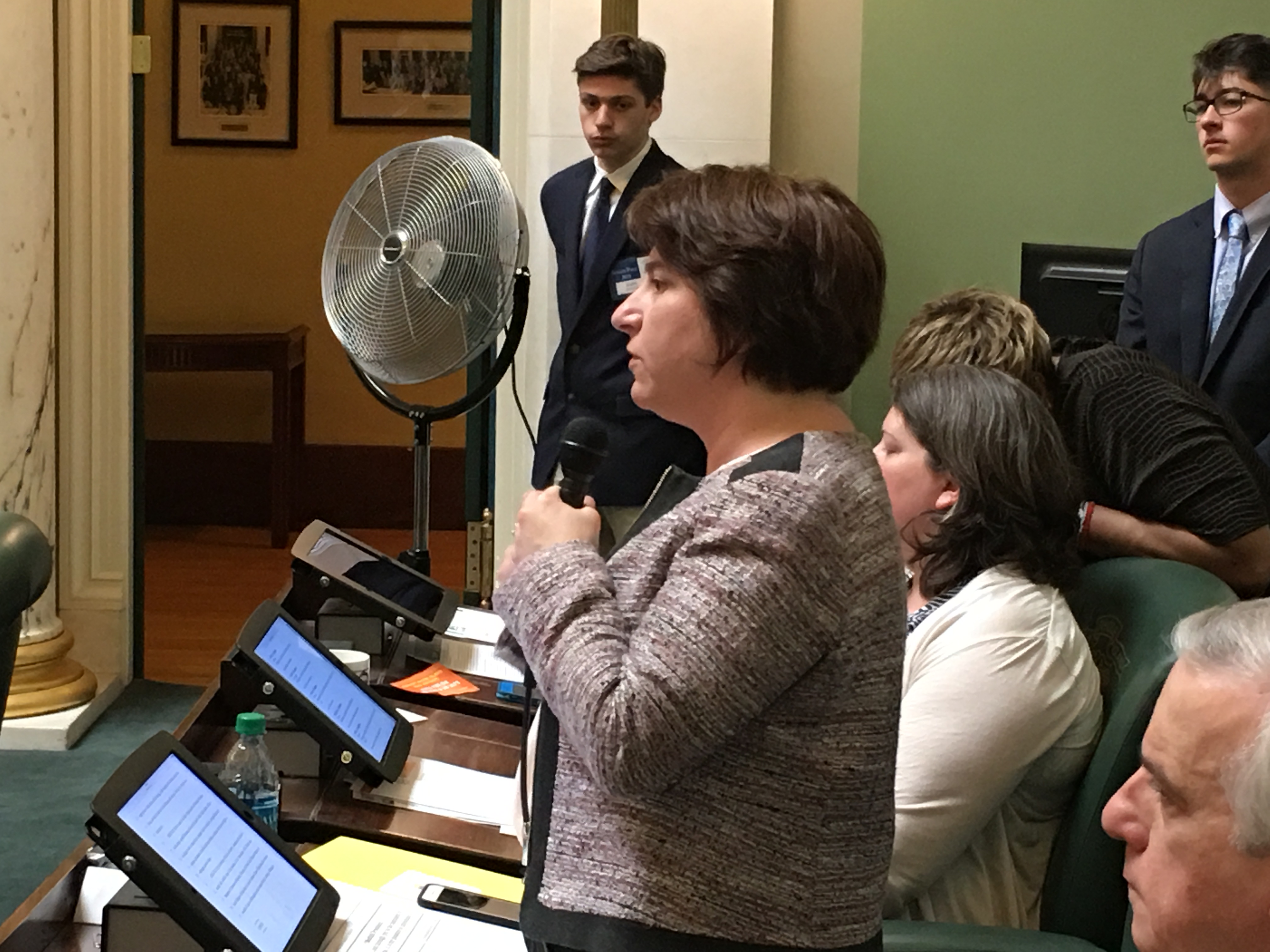 Shortly after the presentation, resolutions to commemorate the passage of legislation in 2016 requiring Holocaust and Genocide education in the state were unanimously passed in both the House and the Senate. Representative Jason Knight of District 67 in Barrington and Warren, the primary sponsor of the House resolution, spoke of the importance of Holocaust and Genocide education, as did Senator Gayle Goldin of District 3, Providence, the primary sponsor in the Senate.