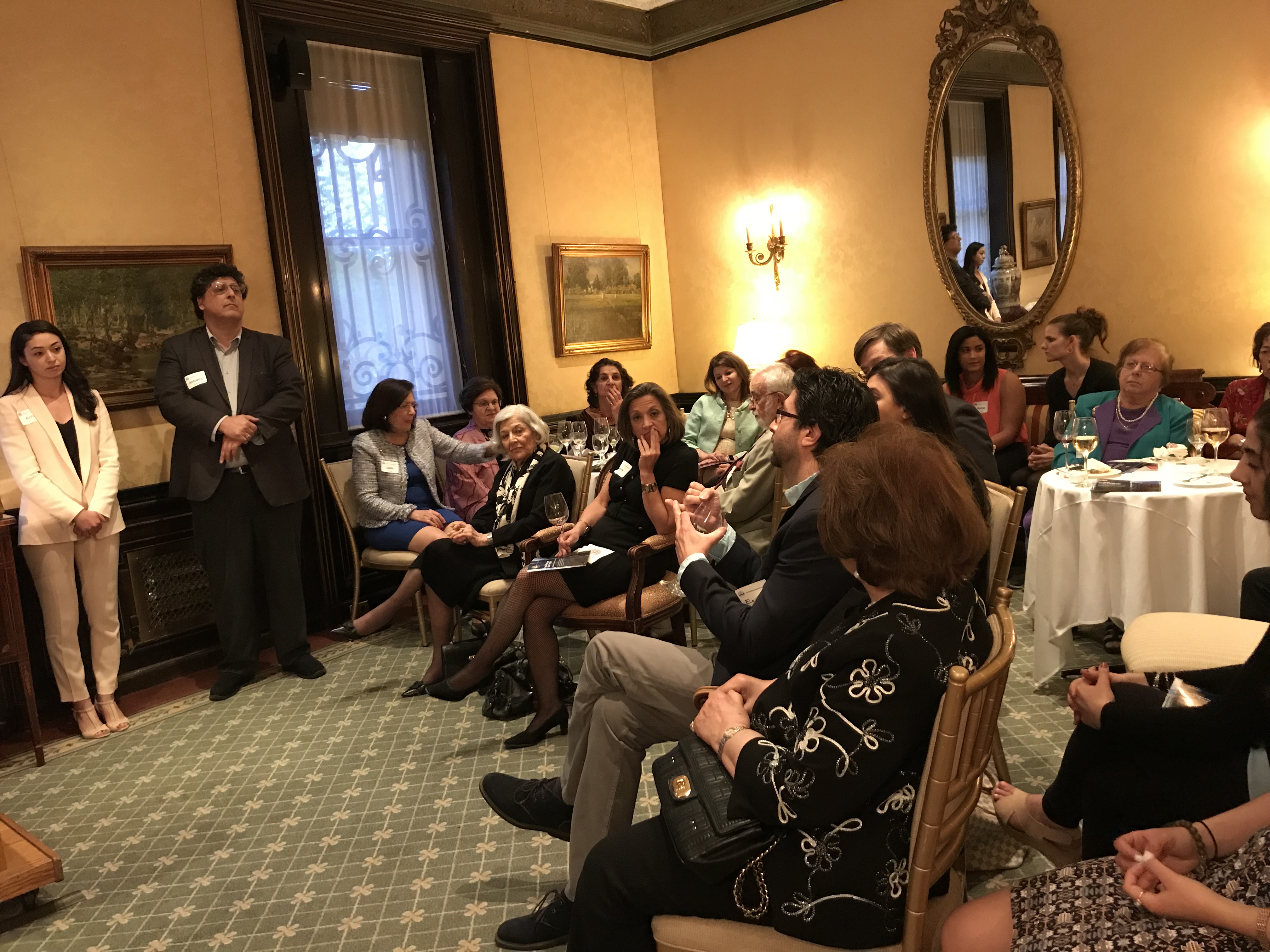 Sarah Ignatius, Executive Director of NAASR, welcomed the many women leaders in the room, as well as the men, and explained that the Cosmos Club was the perfect setting with its tradition of thoughtful discourse and the fact that it had been a male-only club until 1988, thereby illustrating the power of advocacy for equal treatment. She explained how NAASR’s programming not only looks at Armenia’s past but focuses on contemporary Armenian topics, expanding its reach to college and university students as well as the general public, with support from the Calouste Gulbenkian Foundation. She also described NAASR’s plans to transform its headquarters into a true global center for Armenian Studies, with construction starting this month, and encouraged people to consider becoming part of it through their support.